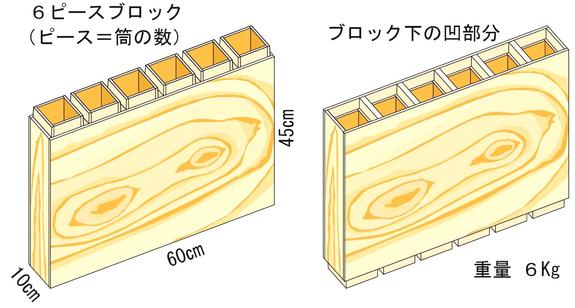 ブロックの下の部分は、上部の四角い凸部がすっぽりと収まるようになっています。積み上げるときには二つのブロックにまたがるよう、互い違いに積みます。