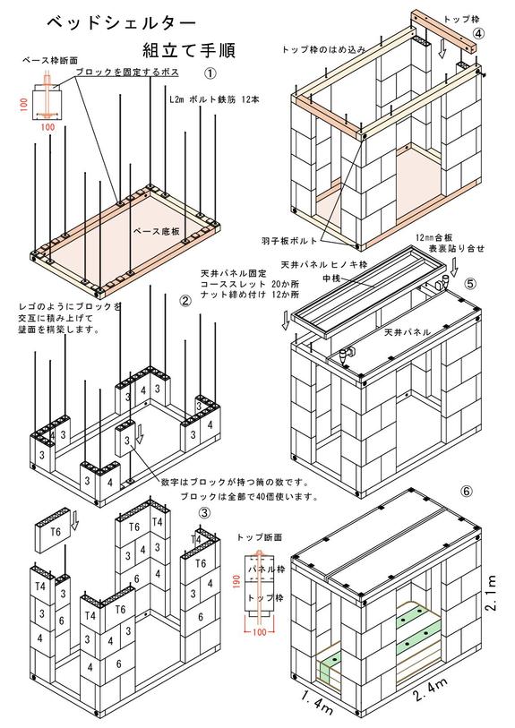 下の図面は実際にベッドシェルターを組立てるときのマニュアルです。
