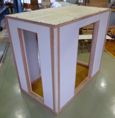 ブロック壁の断面は厚みのある合板なので、どこにでも木ビスが効きます。