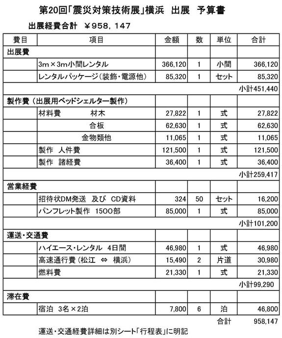 主要部材の一部が松江市にあるため、経費は松江・横浜往復で予算化してあります。