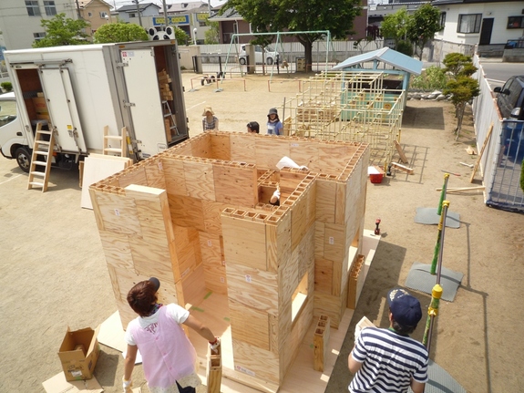「被災現場で必要とされる空間を現場の人たちが作り、必要がなくなれば分解し、次の空間作りに生かす。」