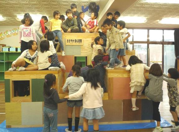 ブロックの特性を生かし、現場のニーズに合わせて様々な空間が作られ、たくさんの人々に喜ばれました。
