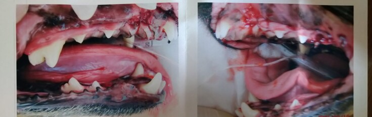 治療・手術内容:重度の歯周病に冒された歯の抜歯と鼻腔内の膿の除去手術、薬の注入 歯茎の切開と骨の状態の確認/高脂血症の治療