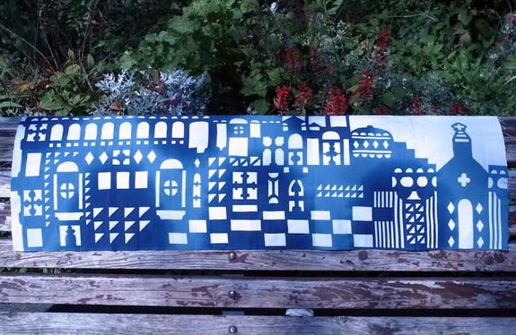 今回制作する手ぬぐいは、夢の広がる町をデザインしたものですが、夢の広がる町とは、どんな人の心の中にもある、「憧れや冒険・人生の夢」がいっぱいに詰まった町です。そんな町に思いを込めて、遠くの異国へ誘うような町の建物をモチーフとしました。建物の中には、様々な形の窓がいっぱい開いています。そうしたデザインにすることで、子どもたちに夢見る力や次の一歩を踏み出していく力を届けたいと思います。