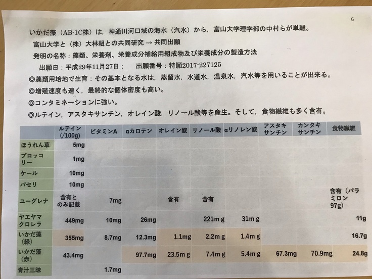 【主原料】富山大学の中村名誉教授からイカダ藻の粉末提供及びバックアップ。