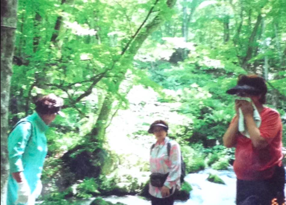 (奥入瀬にて運動をしています。)
