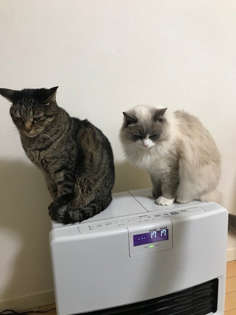 こちらはヒーターの前でダイレクトに暖かい風に当たっています😁