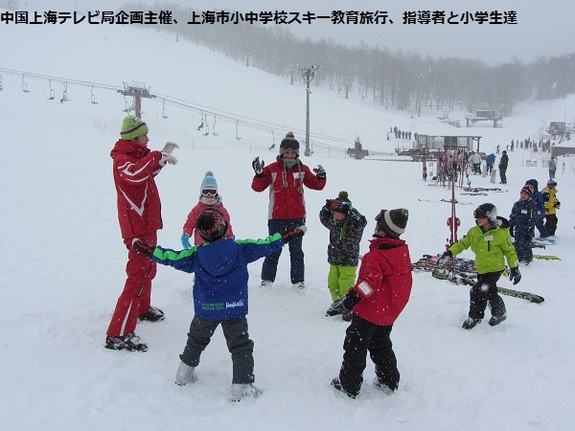 (昨年の、上海テレビ局企画の上海小中学生にスキー教室を指導してい