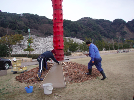 市民や、観光客が少ない冬場から早春の間に、NPO法人地球と握手のメンバーと、市民のボランティア―の協力のもとで、福井県小浜市の小浜公園山頂に設置されているモニュメントの清掃と、修復を行います。