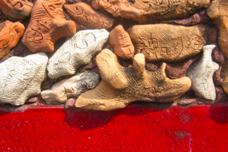 そのためには、多くのボランティア―の方々の協力を得て、丁寧に時間をかけて、清掃と修復を行わなければならず、ボランティア―の方々への人件費が必要になりました。このスナップは別作品ですが、一部“カビ”の様子が解るための画像です。近年の作品は、1200℃で焼成しています。そのため丈夫で破損の心配もありません。