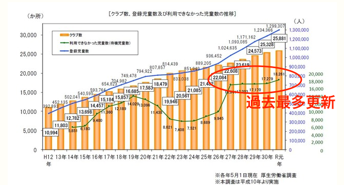 放課後児童クラブ(学童保育)を希望したのにも関わらず、利用できなかった「待機児童」は