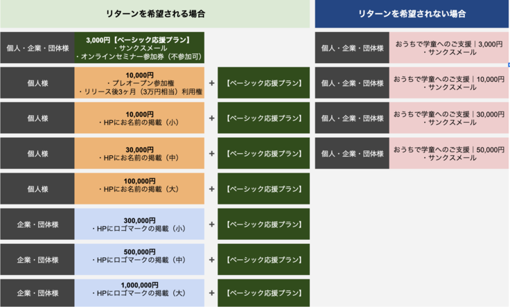 ※コロナウイルスの影響より、プロジェクトもしくはリターンが遅延する可能性があります。その場合は、速やかに支援者様に延期の日時をご報告させていただきます。