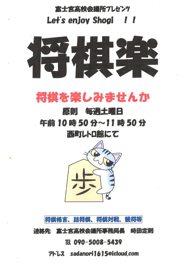 富士宮高校会議所発案の賑わい創出プロジェクト、将棋楽を原則毎週土曜日開催しています。