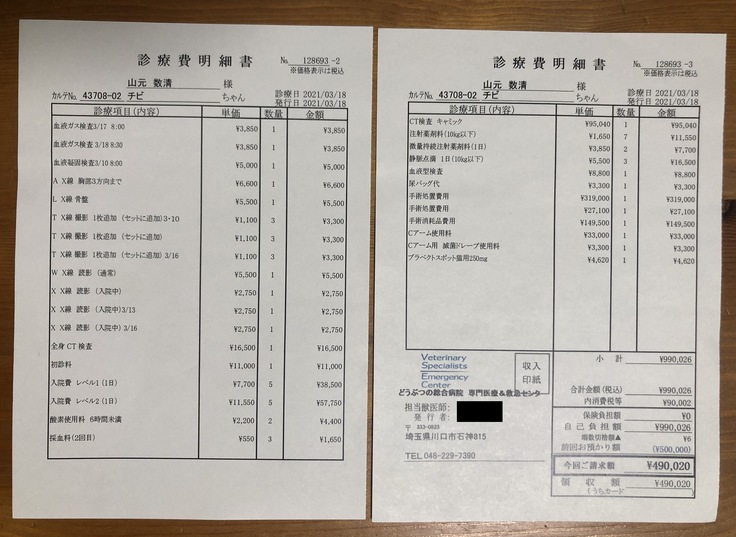 -医療センター (3/9~3/18 検査、手術、入院) 990,020円