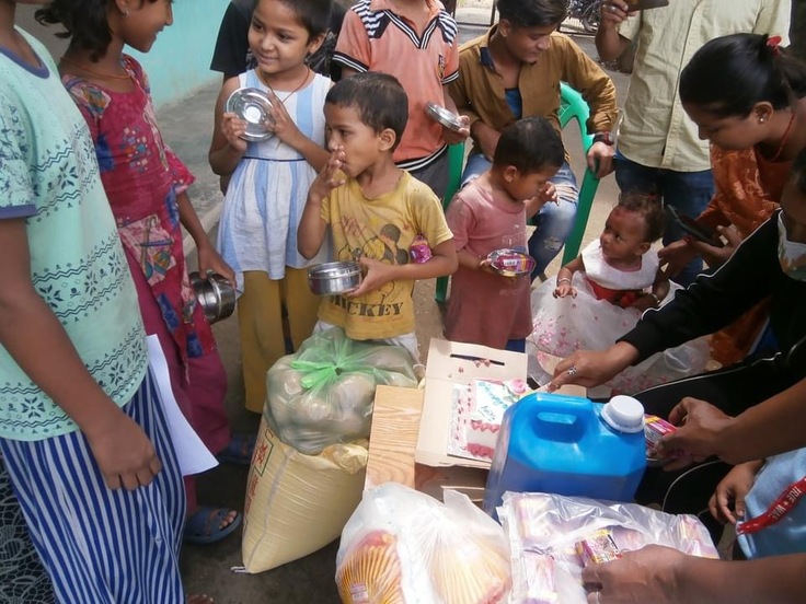 これはご近所さんが自分の子どもの1歳のお誕生日を記念して、孤児院に食べ物の寄付して下さった時の様子です。