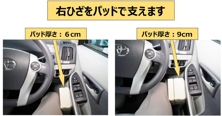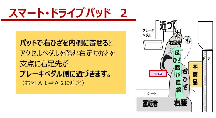 本商品『スマートドライブパッド』はドライバーの右ひざをパッドで支えることで