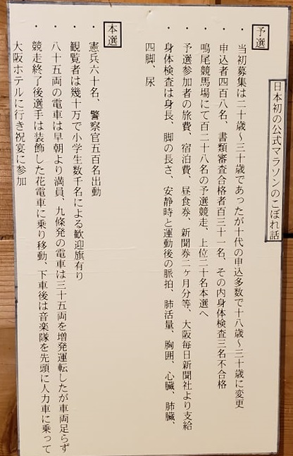 綾木さんは、除隊後、1909年の日本初のマラソン大会・神戸―大阪間20哩(マイル)長距離走に在郷軍人として出場し、2位に5分近い大差をつけて優勝されました。