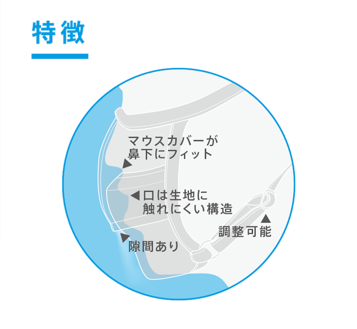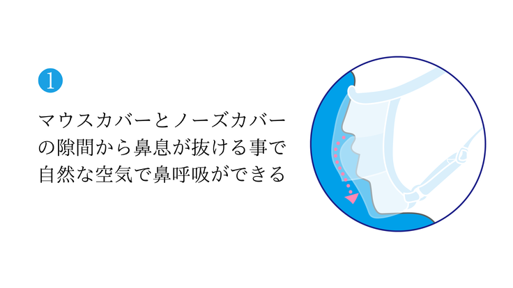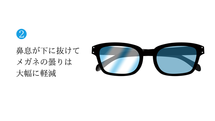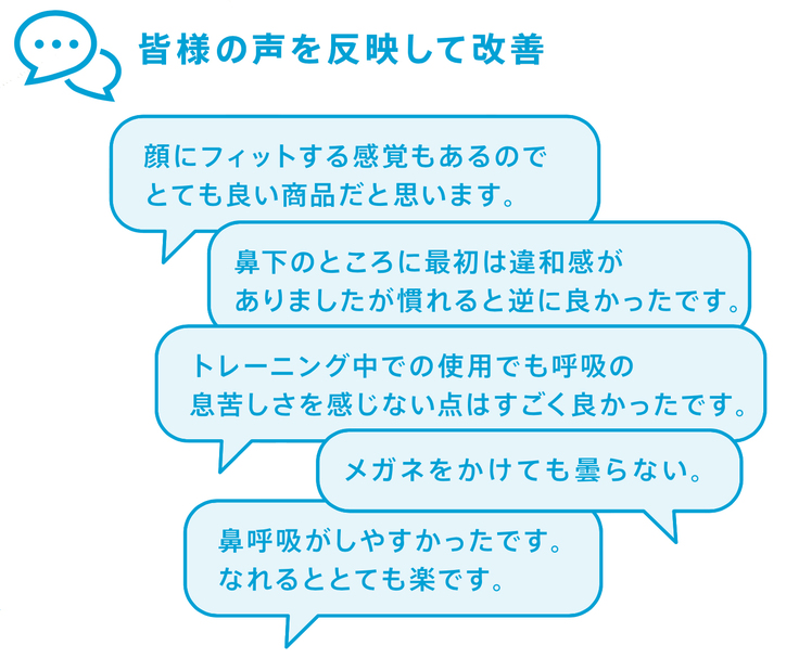 自然な空気で鼻呼吸ができるよう、こだわって作りました。スポーツをする方だけでなく「メガネが曇らなくて快適です」という声もたくさんいただいています。