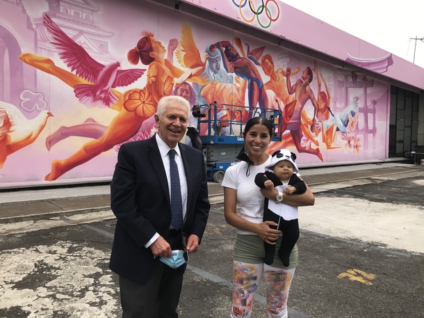 コロナ禍ですので元々はなんの式典もしないとおっしゃっていたのですが、壁画を見た途端「テープカットはしよう」とおっしゃいました。