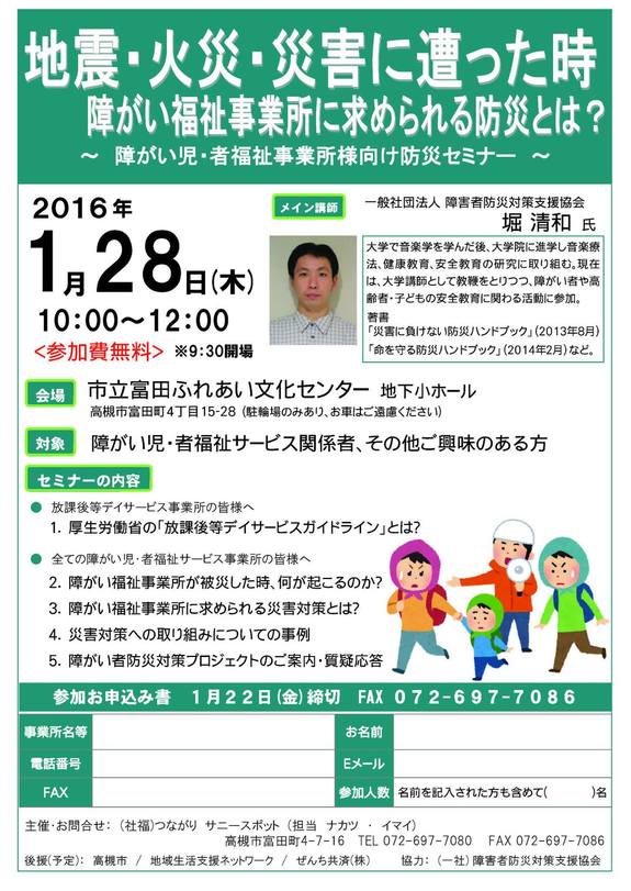 障害者の方は、災害時に周りの状況が一変してしまうので、自力で逃げることが難しく、自治体での防災対策も、要援護者の名簿登録が進んでいるだけであって、障害者の方が利用する施設での防災対策は進んでいないのが現状!