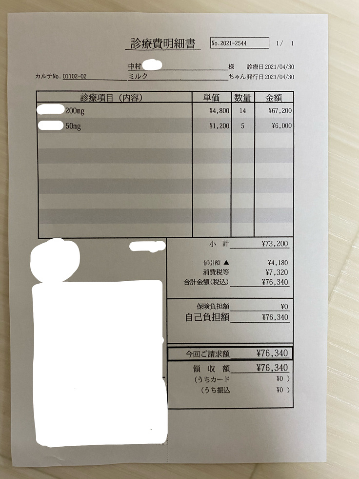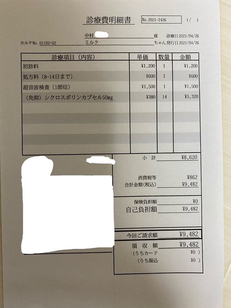 クラファン申請当時は検査費、通院費などは自費で賄い、治療に必要なお薬代のご支援のご協力をお願いしておりました。