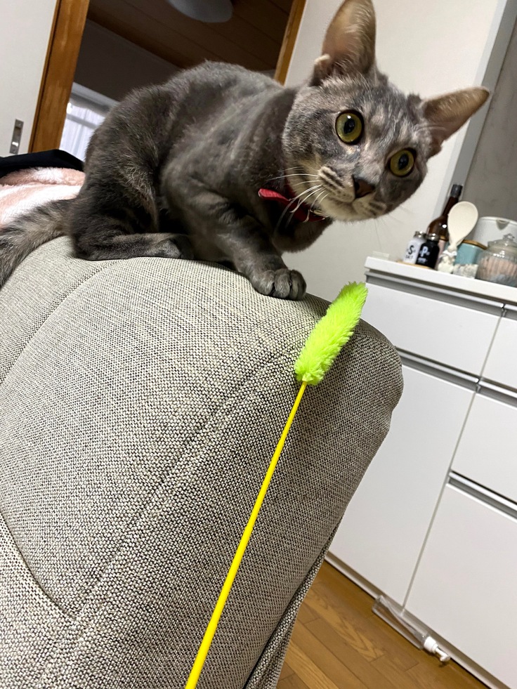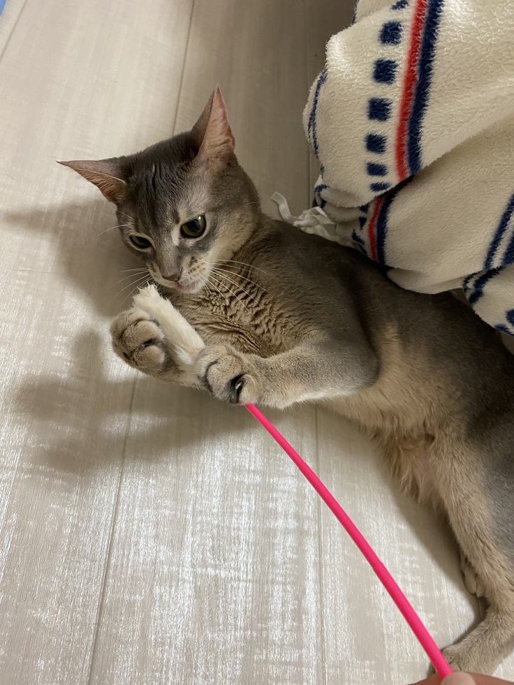 ミルクはおもちゃを見るとすぐに飛んで来て、遊べないときも1人で遊ぶくらいおもちゃで遊ぶことが大好きです。しかし、4月上旬から無邪気に遊んでいた姿が段々少なくなりました。姉が4月から家を出て遠方に行ったためその寂しさから元気がないのかなと最初は軽く思っていました。