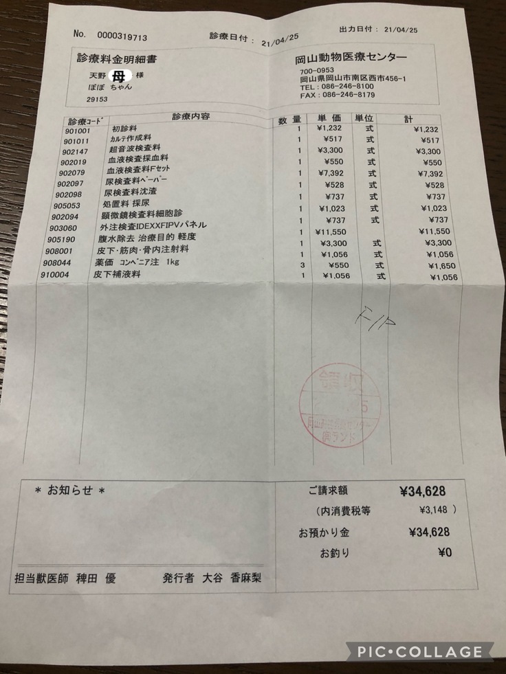 症状ですぐFIPの可能性があると告げられ、もし違ったら困るのでいろんな観点から検査