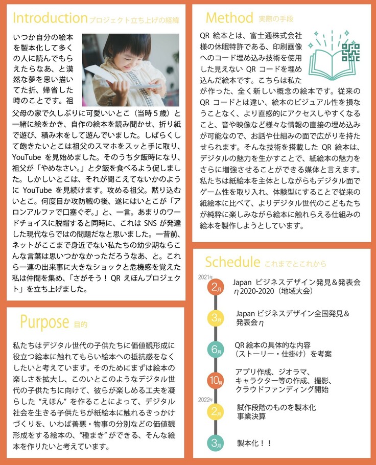 この活動も始めて1年がたちました。自分たちが描く理想の「絵本」を目指して、チームで議論をすすめ、大人の方の協力もいただき、今があります。この本を子供たちに楽しんで読んでほしい。そして「何か大切なこと」に気づく、きっかけになってほしいと思っています。そのためには完成させることが絶対条件になっていきます。