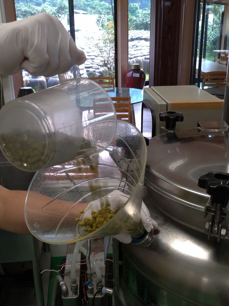 このホップを、香りづけに、熟成中のビールの中に投入し、さらにホップの香りを付けます!