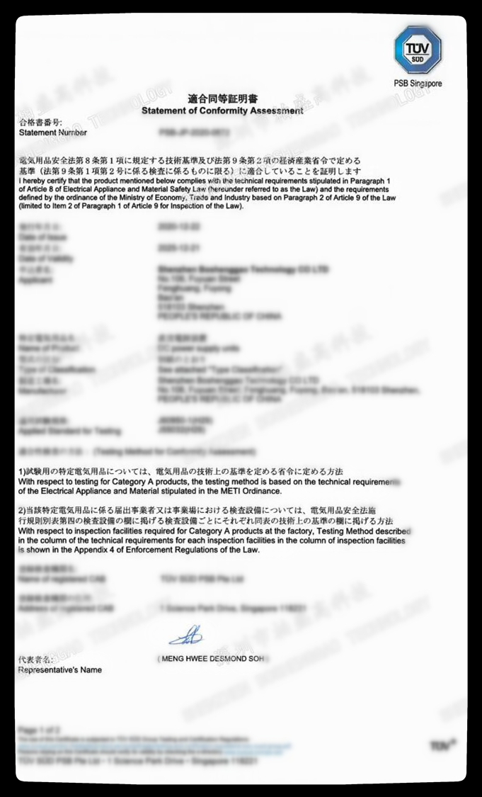 ●日本規格PSE認証取得