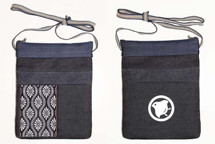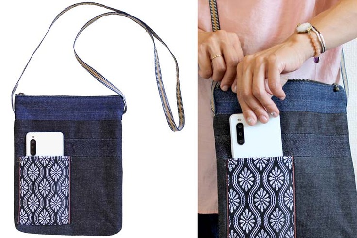 ポケット部分に倉敷の特産品である畳縁、肩紐に真田紐を使用しました。