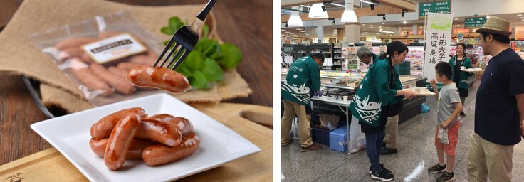 これまでに、商品化につなげた豚肉加工品は、山大生たちが地元のスーパーマーケットで試食会やアンケート調査を行い、株式会社東北ハムと一緒に改良を重ねてきたことから、エサから庄内産の豚肉加工品として、庄内地域で人気商品になりつつあります(山形大学ブランド(スマート・テロワール)あらびきウインナーは、令和元年度やまがたふるさと食品コンクールで山形県知事賞を受賞)。