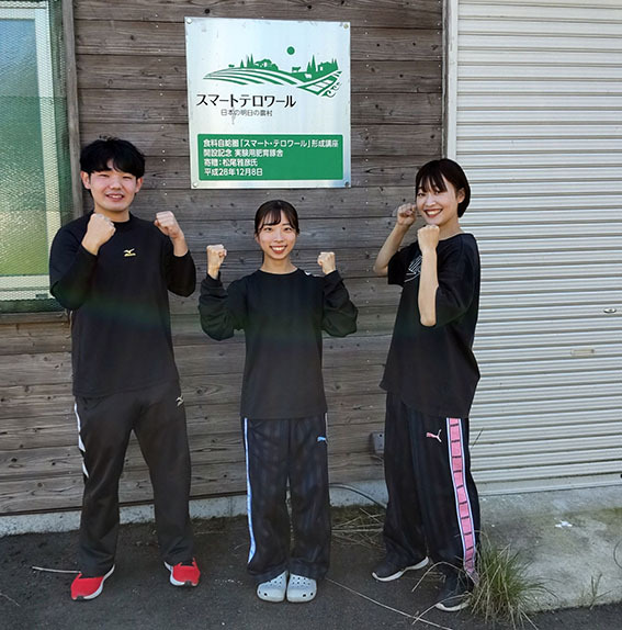このプロジェクト(スマート・テロワール)は、穀物(飼料用トウモロコシ)生産、それらを利用した豚肉生産、さらに、それらを原料とした加工食品の製造から成立っています。今回は、卒業論文として、このプロジェクトに関わる3人の学生さんを紹介します。