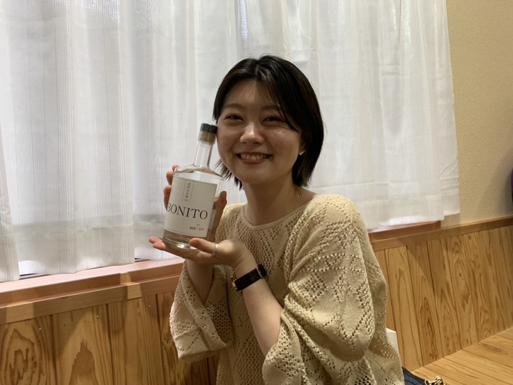 西伊豆が大好きで、西伊豆を感じられるジンと聞いてとても楽しみにしていました。今回、幸運にもたまたま西伊豆を訪れるタイミングが、試作品が出来たタイミングと合って「西伊豆の神-GIN-」飲ませていただくことが出来ました。実際にいただいた感想は、ちょっと焼酎っぽく後味に和な感じがします。サワーっぽく飲んでも美味しいし、出汁みたいに食事を引き立てる日本食に合うジンだと思います。西伊豆の海の幸でこのジンを飲めたら素敵だなと思いました。西伊豆が大好きなので、このジンを通じてたくさんの人が西伊豆を知ってくれたらうれしいです。
