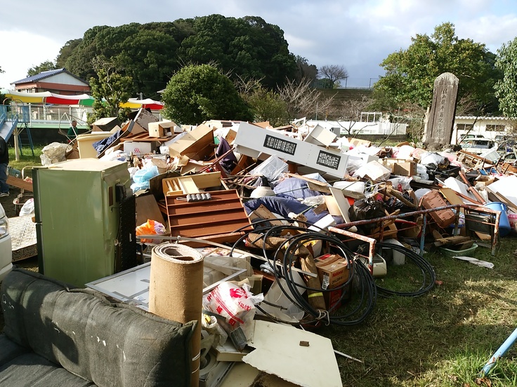 ※上から①公園がゴミの廃棄場所②車内のダッシュボード水位③室内冷蔵庫が転倒