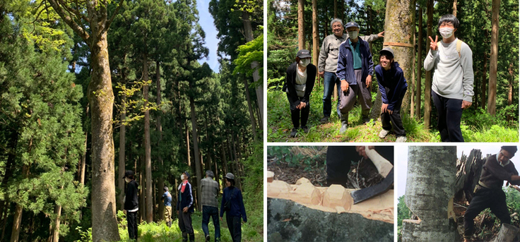 道具の準備が出来ましたらいよいよ製作の本番なります。今回「朝倉椀チャレンジ」では池田町の林業家、江端さんのご厚意によりすでに伐倒するケヤキを選定しております。令和3年11月13日(土)(予備日 14日、20日)にケヤキを伐倒し、その場で荒型取り、カタブチ、ナカギリなどの作業を行う予定です。これらはお椀製作の工程で、もう今は誰も行うことがなくなった作業です。
