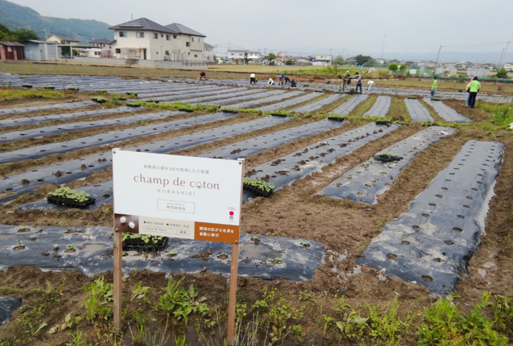 綿花から衣服ができる生産過程を知ってもらいたいとの思いから、近隣の小学生を対象に綿花畑での作業(種まき・手入れ・収穫等)の体験をしてもらっています。また、社会貢献活動の一環として就労継続支援事業所の方にも作業を手伝っていただいております。