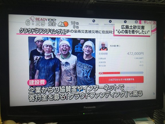 2月4日午後6時15分からの広島テレビ「テレビ派」の番組で復興交流館モンドラゴンが紹介されました。発案までの経緯や、これからの取り組み、クラウドファンディングについても取材してもらいました。