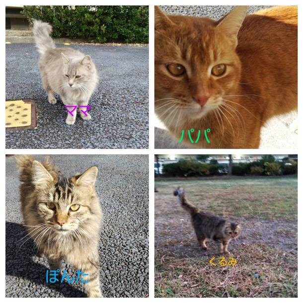 初めてぽんちゃんと母猫を間近で見たんですが、いつも一緒に居て母猫の後をちょこちょこ歩いてて、母猫だと思ってた猫がオスだったのです😲