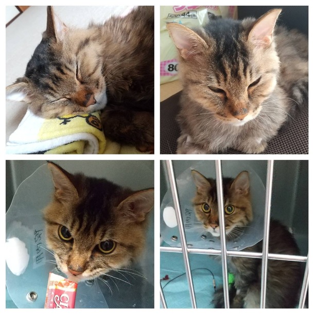夕方に面会に行って来たのですが、起き上がってちゅーるを半分食べてくれましたが体が少し辛そうでした。