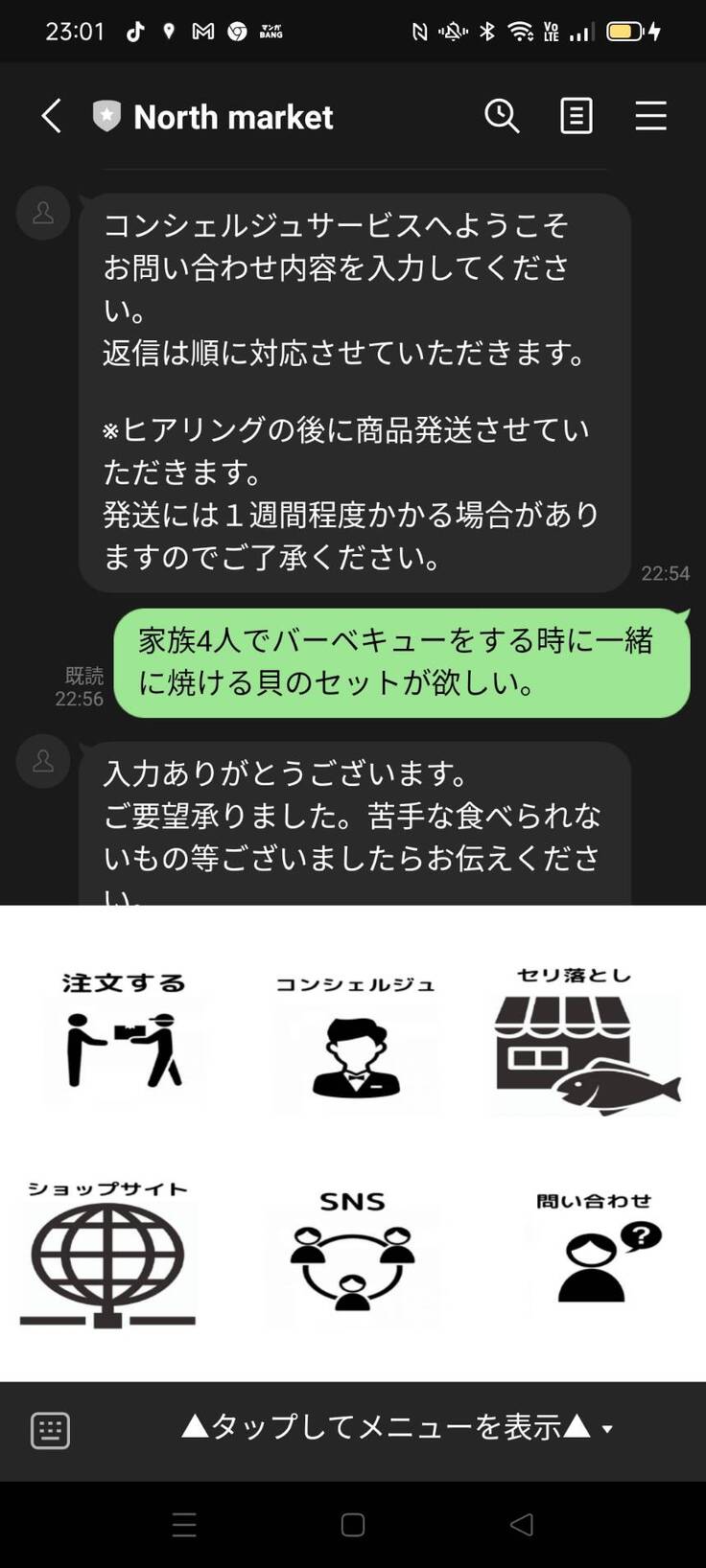 また、北海道中の商品が集まる北海道中央卸売市場からお客様の好みや旬の物を選んで仕入れて購入することができるコンシェルジュサービスを行います。
