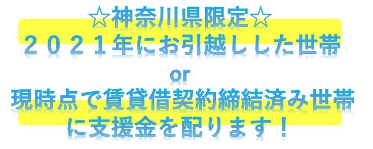 ・支援対象者の対象範囲:2021年に神奈川県内でお引越しを行った方+現時点で賃貸借契約を締結した者で賃料54,000円~150,000円以内