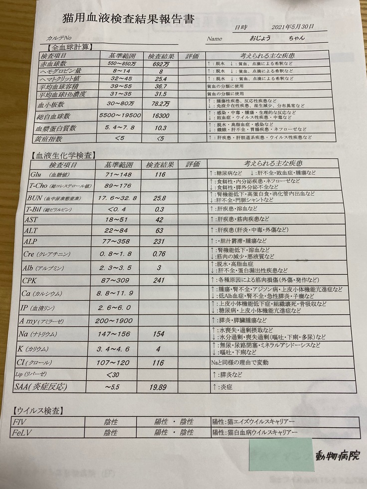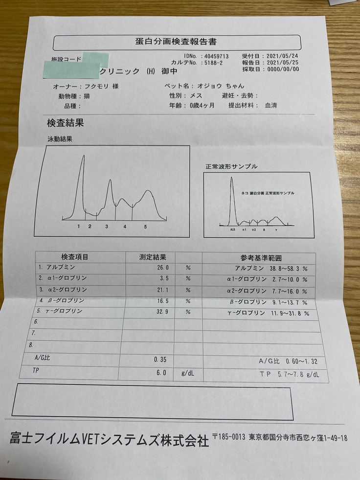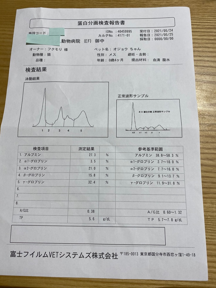 猫伝染性腹膜炎には“ウエットタイプ” “ドライタイプ” “混合タイプ”があり、お嬢は“ウェットタイプ”の初期であると診断されました。