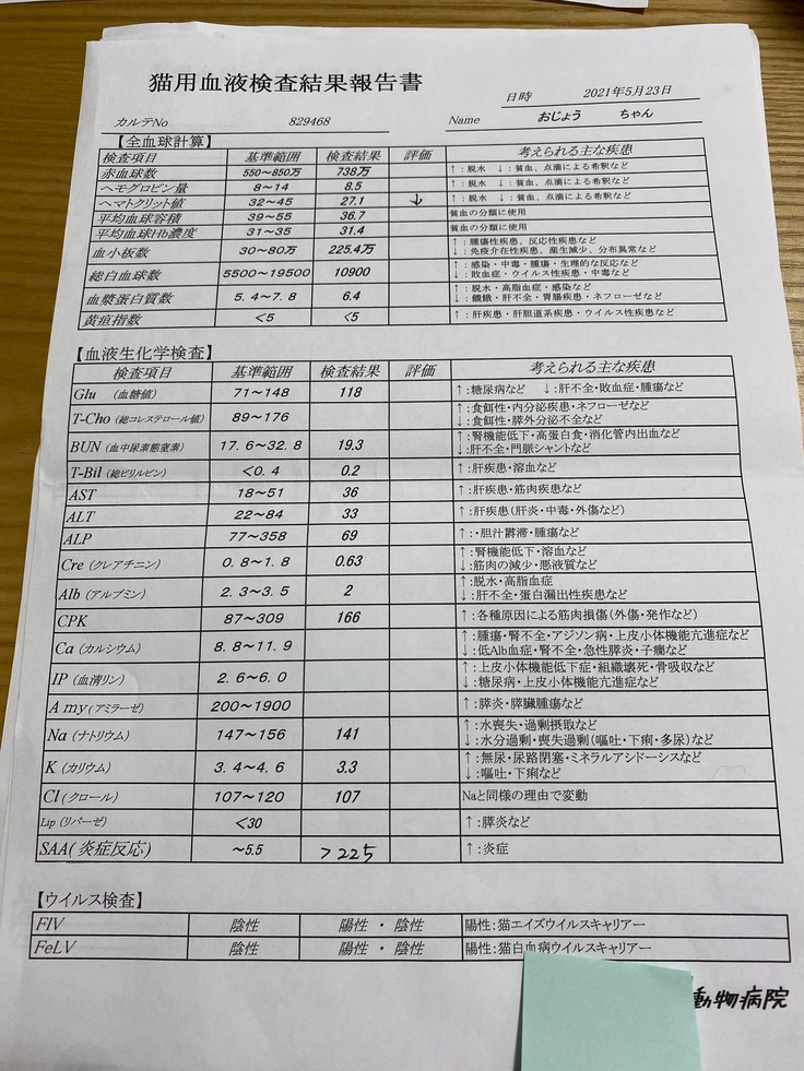 炎症反応が225→19.89に。貧血は進行しているけど徐々に良くなると言われました。