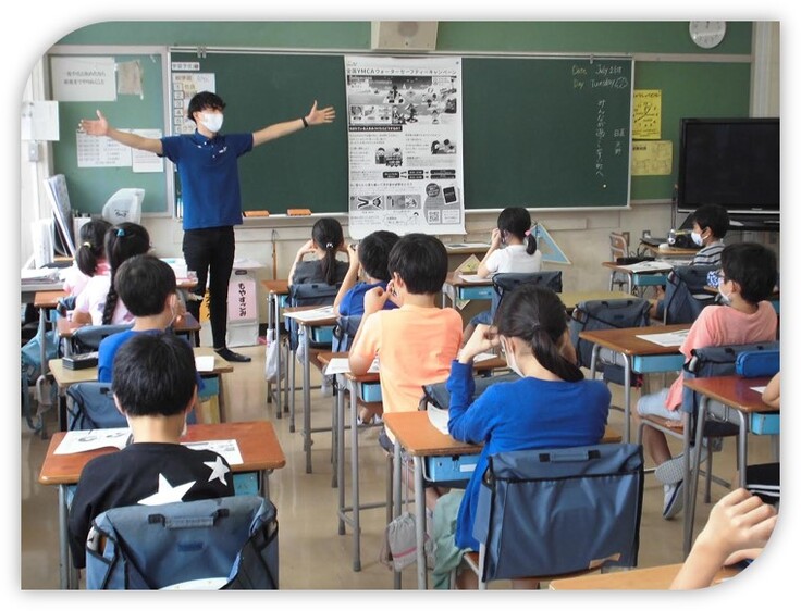 ウォーターセーフティーキャンペーンの一環として、ウォーターセーフティーハンドブック・ポスターというものをYMCAの近隣にある小学校に配布させていただいたり、対外指導で直接小学校に出向き小学生に着衣泳の指導、教員にプールの安全管理講習などをさせていただいております。