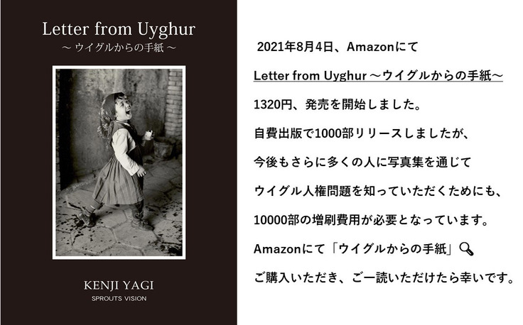 そこで、2021年8月、私はウイグルの人々の姿を写真に収めた Letter from Uyghur『~ウイグルからの手紙~』を自費出版することにしました。
