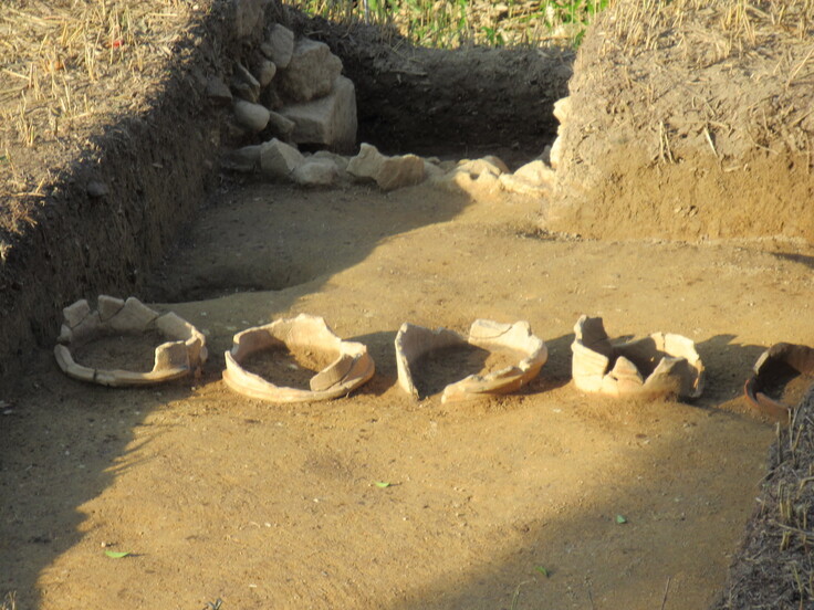 5.九州熊本県阿蘇や天草地方との関係性があり、造山古墳前方部の石棺は阿蘇、千足古墳には直弧文が彫られた天草砂岩の石障(仕切り石)がある。