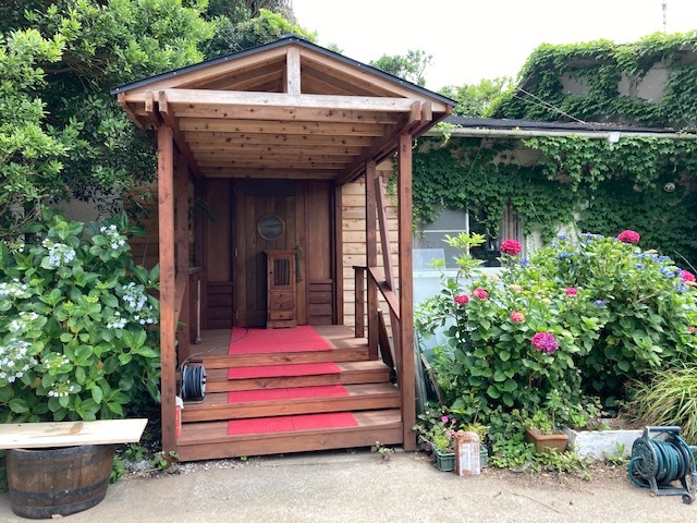 テラスのエントランス部分がほぼ完成しました。開発地域内はいつも季節の花々で彩られています。少し前ですがアジサイがキレイに咲き誇っていましたヨ♫