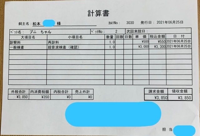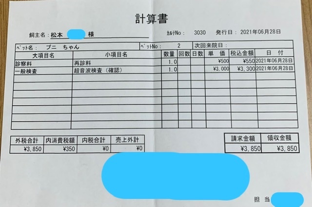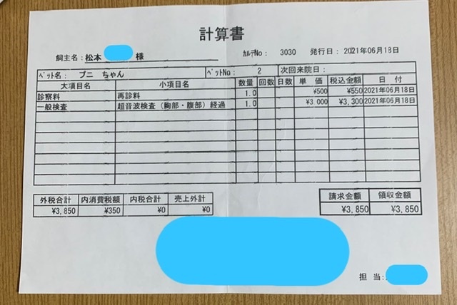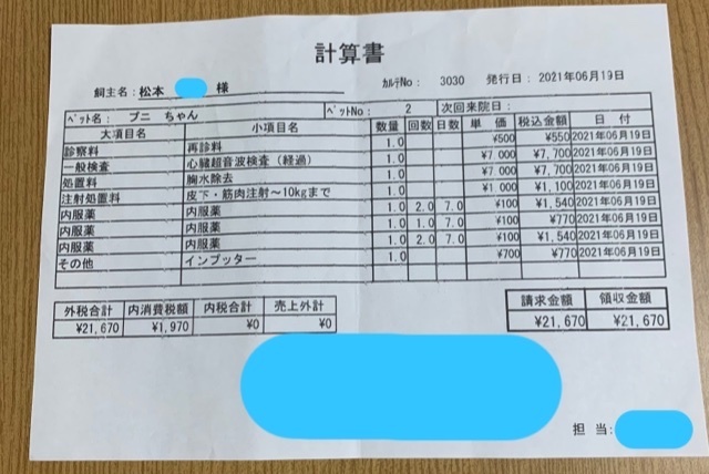 次の日明らかにプニの様子がいつもと違って、呼吸数が異常に速く、頭が常にフラフラ揺れていて、身体全体がかなり熱く、抱っこした時に、心臓の鼓動がかなり振動してくるなどの症状があり、急いで動物病院に連れて行きたかったものの、その日は運が悪く日曜日だった為、月曜日の朝一で病院に連れていきました。