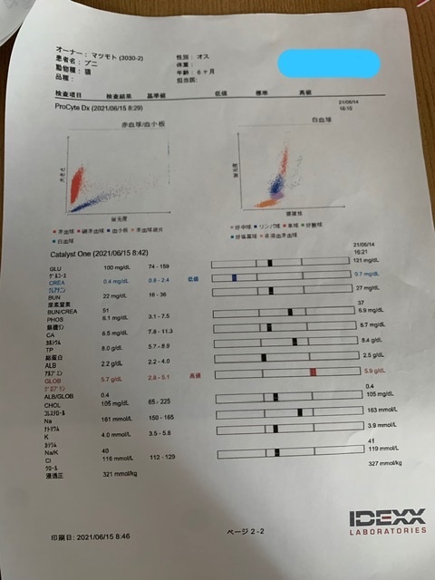 次の日診て頂いた所、昨日とほぼ変わっておらず水をぬいてもらわなくても大丈夫でした。治療を開始する前までは1日置きには胸水が溜まってしまい呼吸困難にならない様にぬいてもらっていたはずなのに、まだまだ油断は出来ませんが、ほんの少しの生きる希望が見えた気がして、涙が止まりませんでした。